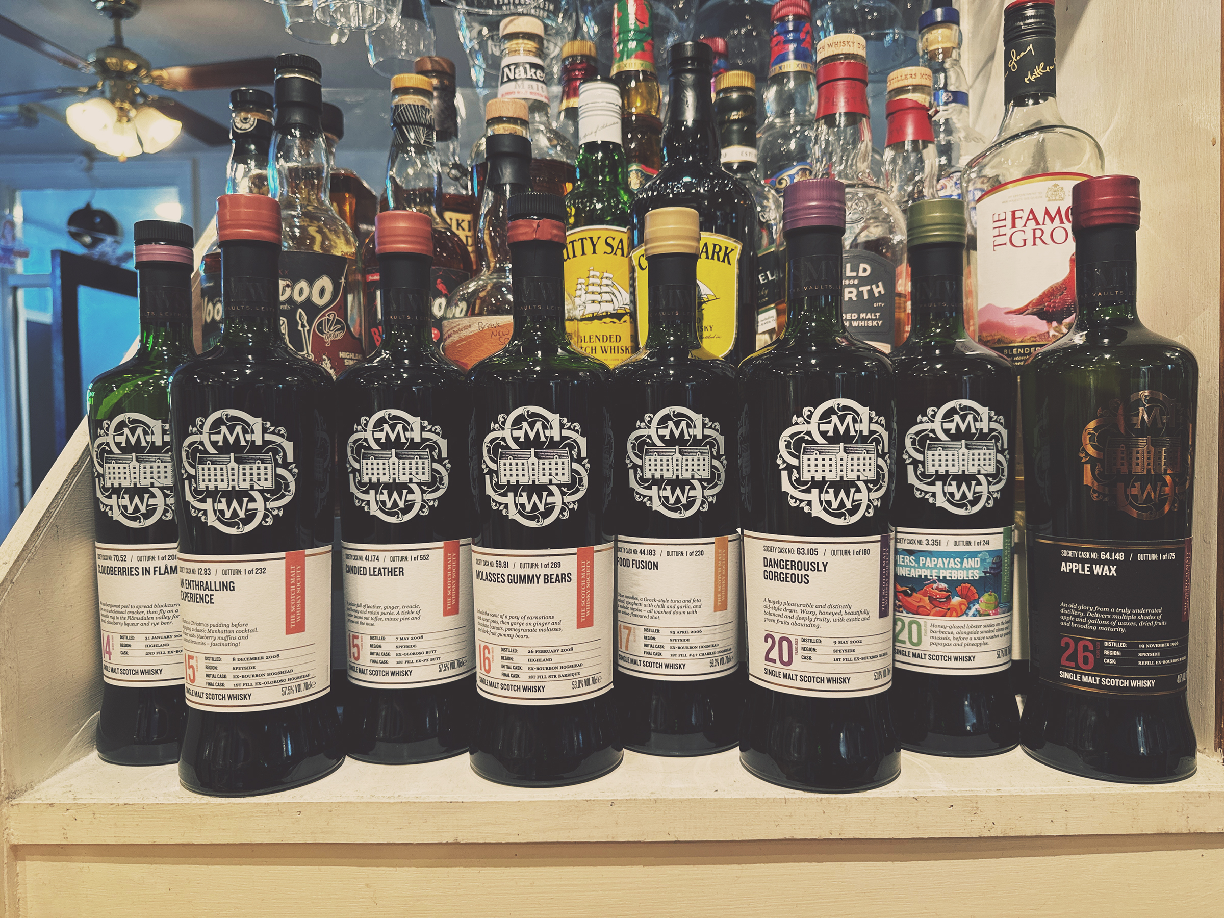 A selection of SMWS bottlings take pride of place on the bar at The Commercial